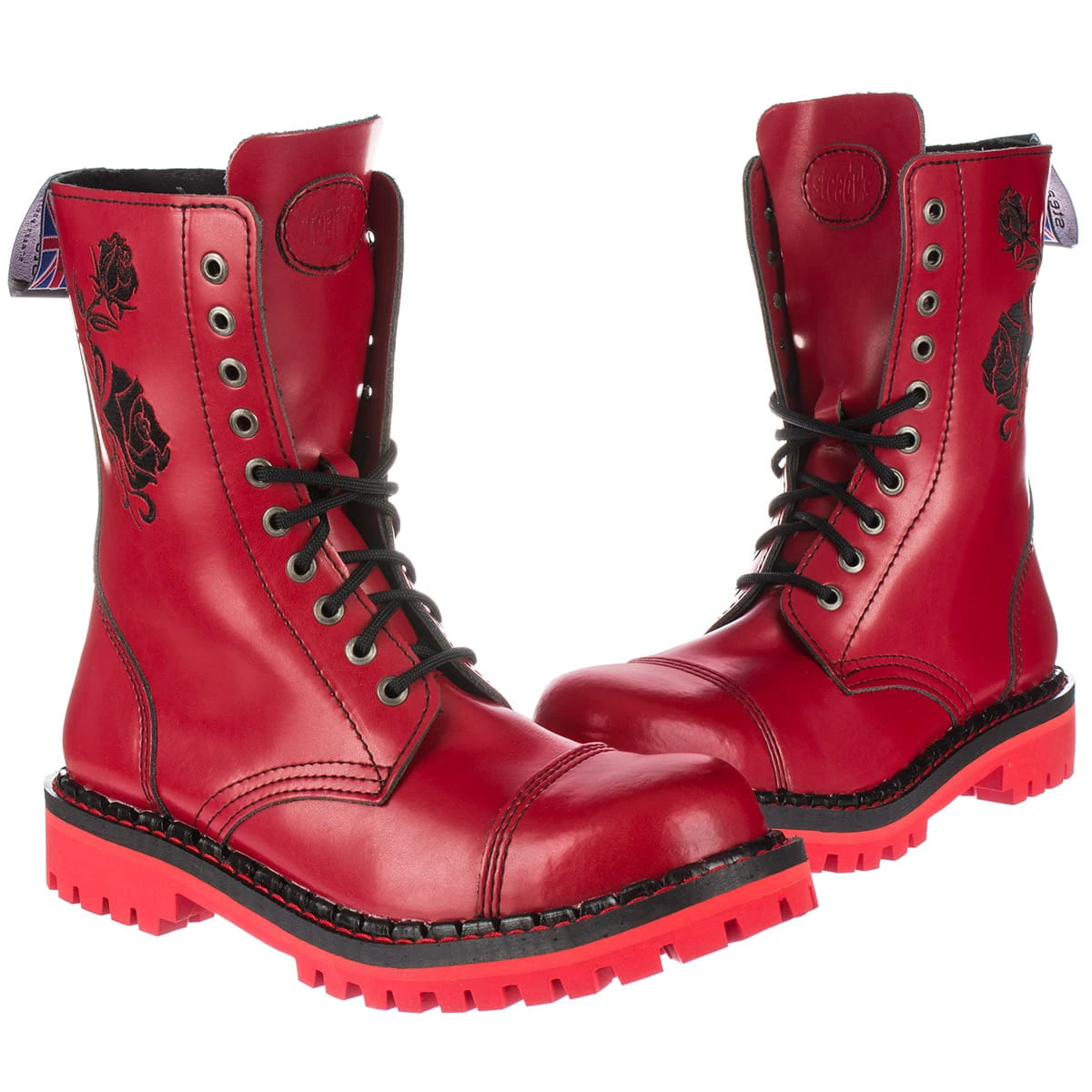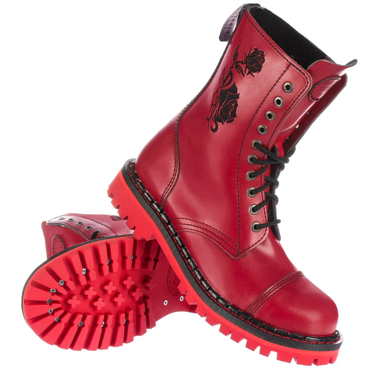 Glany Steady's 10 dziurek RED czerwone haft róży