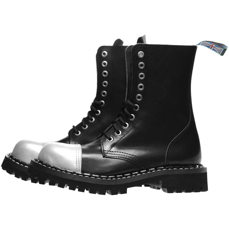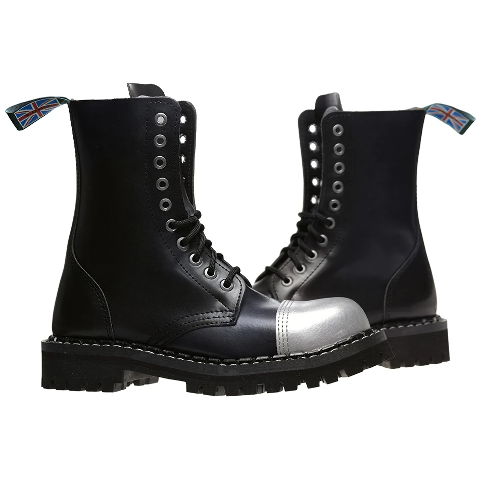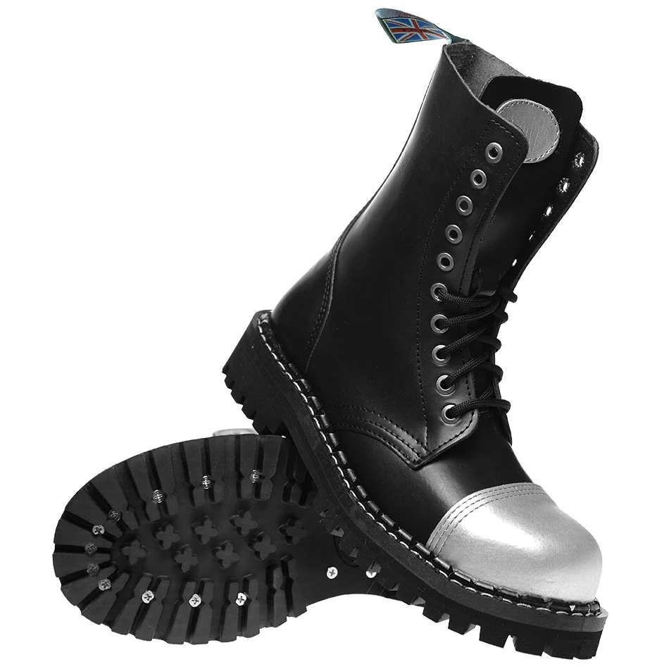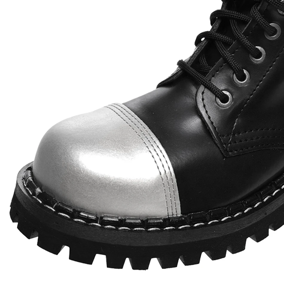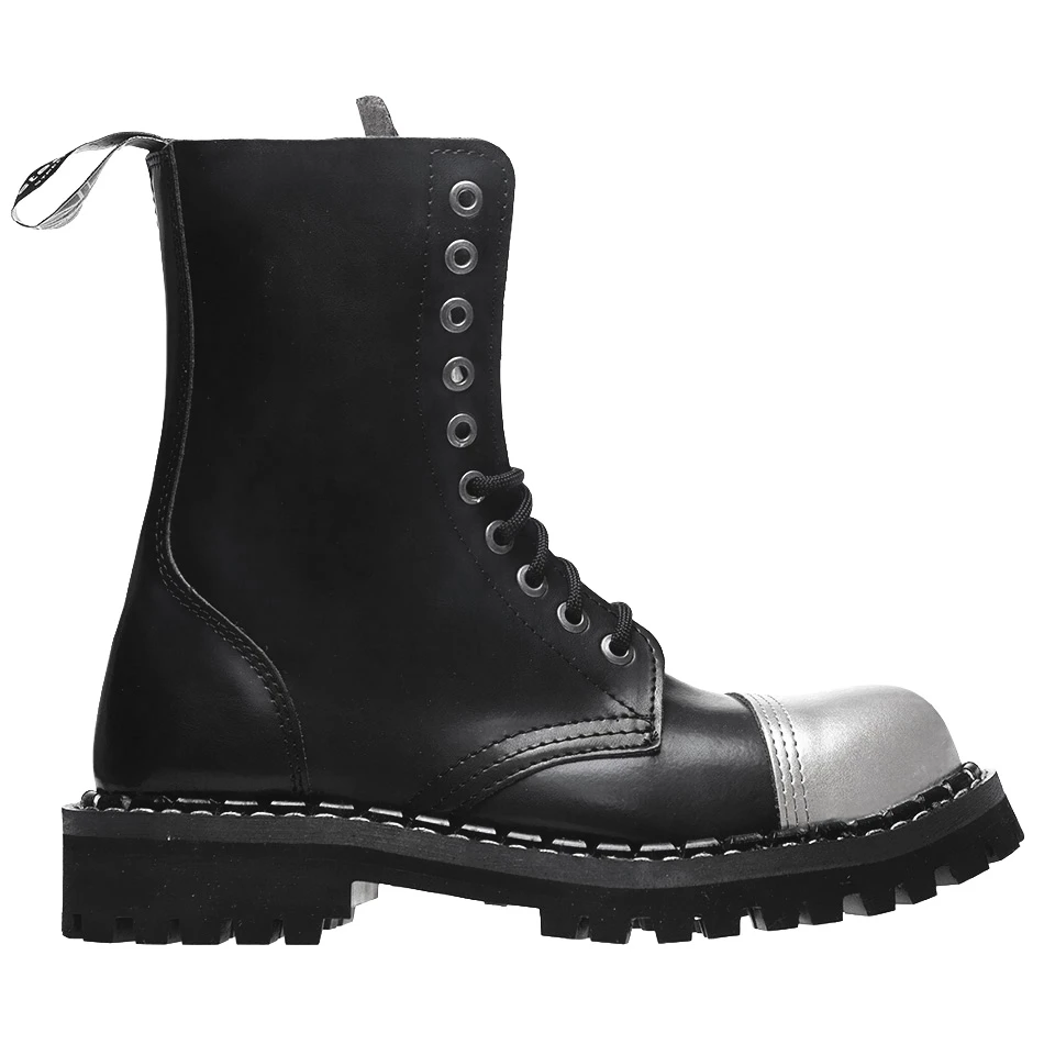 Glany Steady's 10 dziurkowe boho, czarne ze srebrnym noskiem