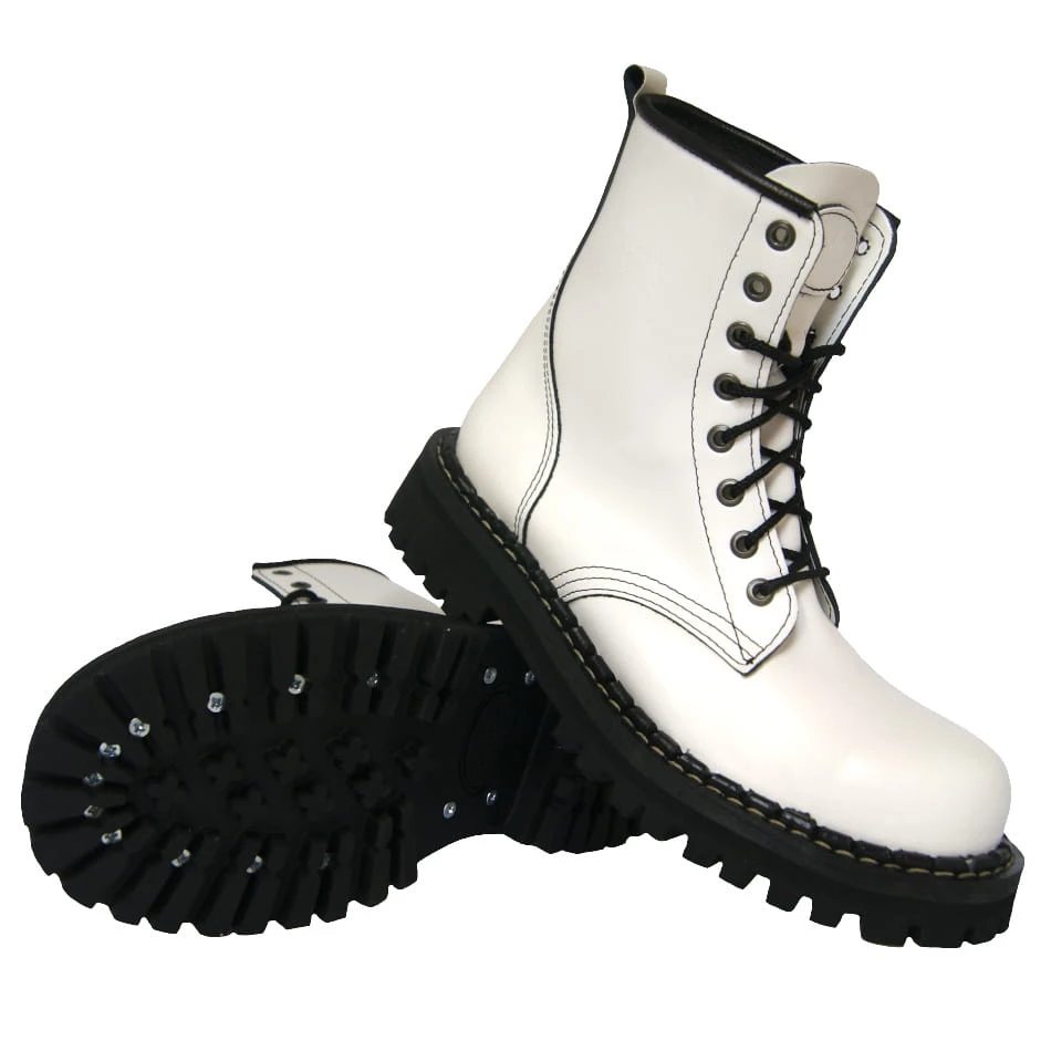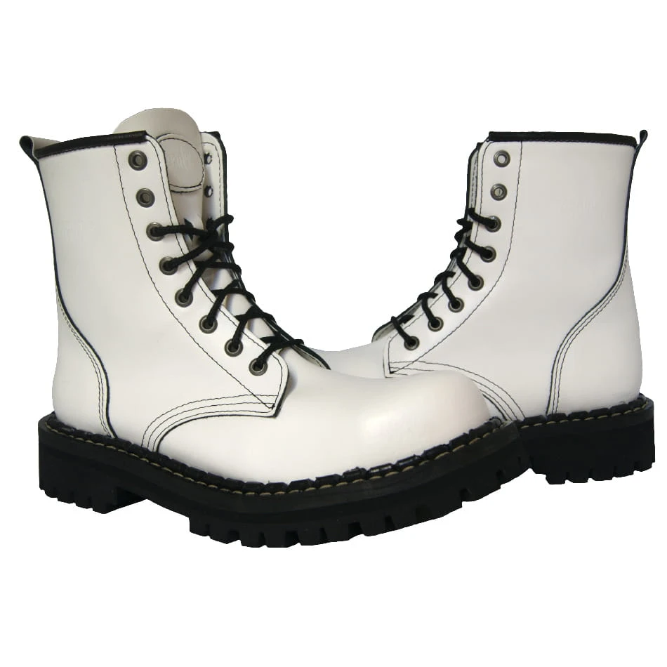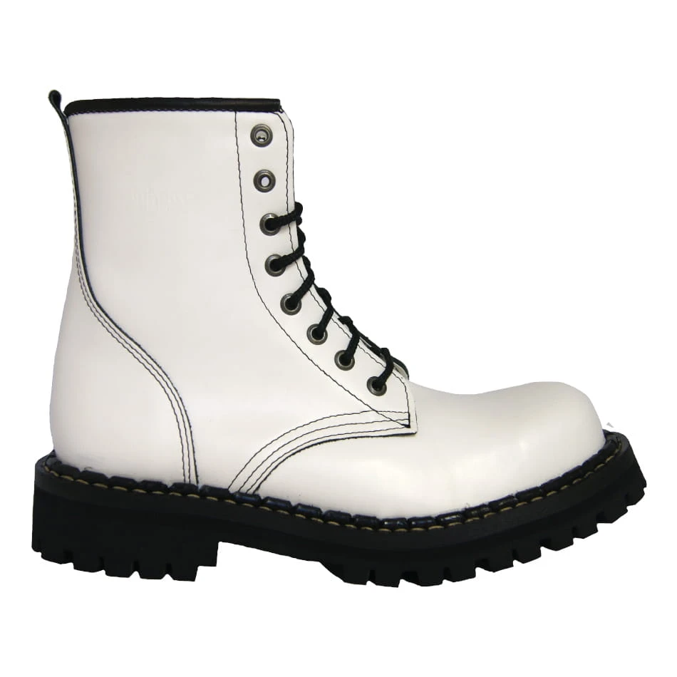 Kultowe Glany Steady's 8 dziurkowe białe z czarną lamówką