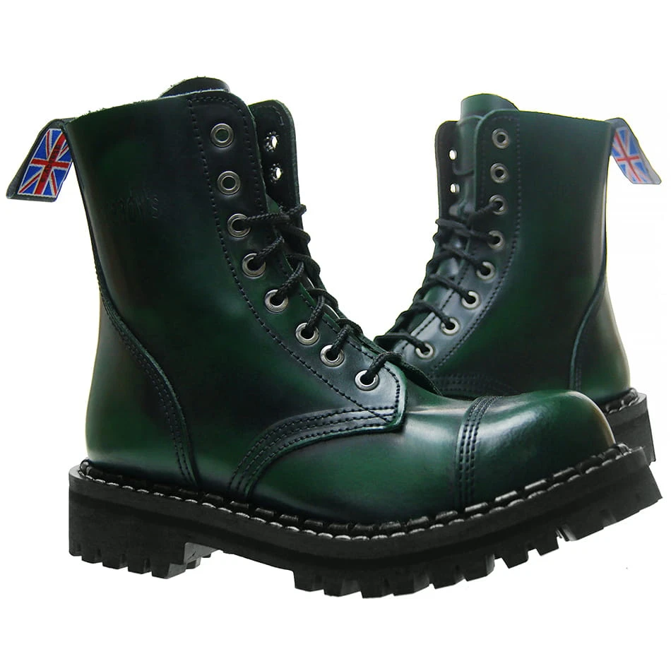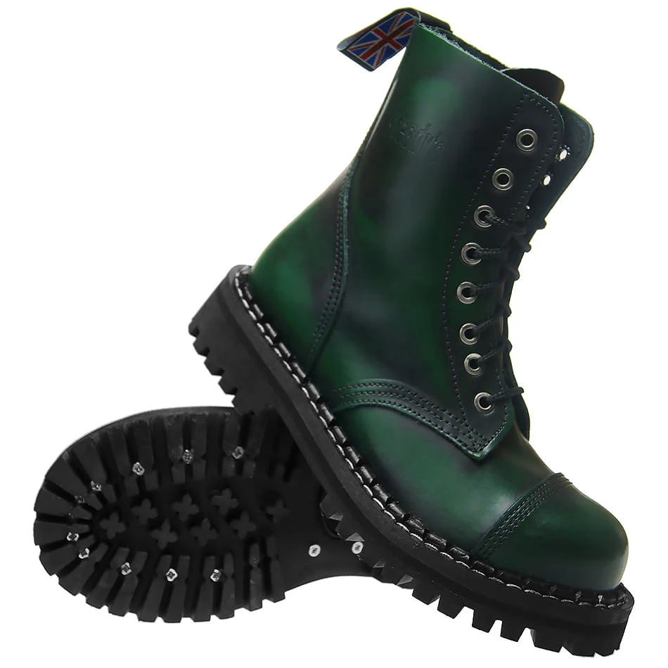 Kultowe Glany Steady's 8 dziurkowe przecierane na zielono