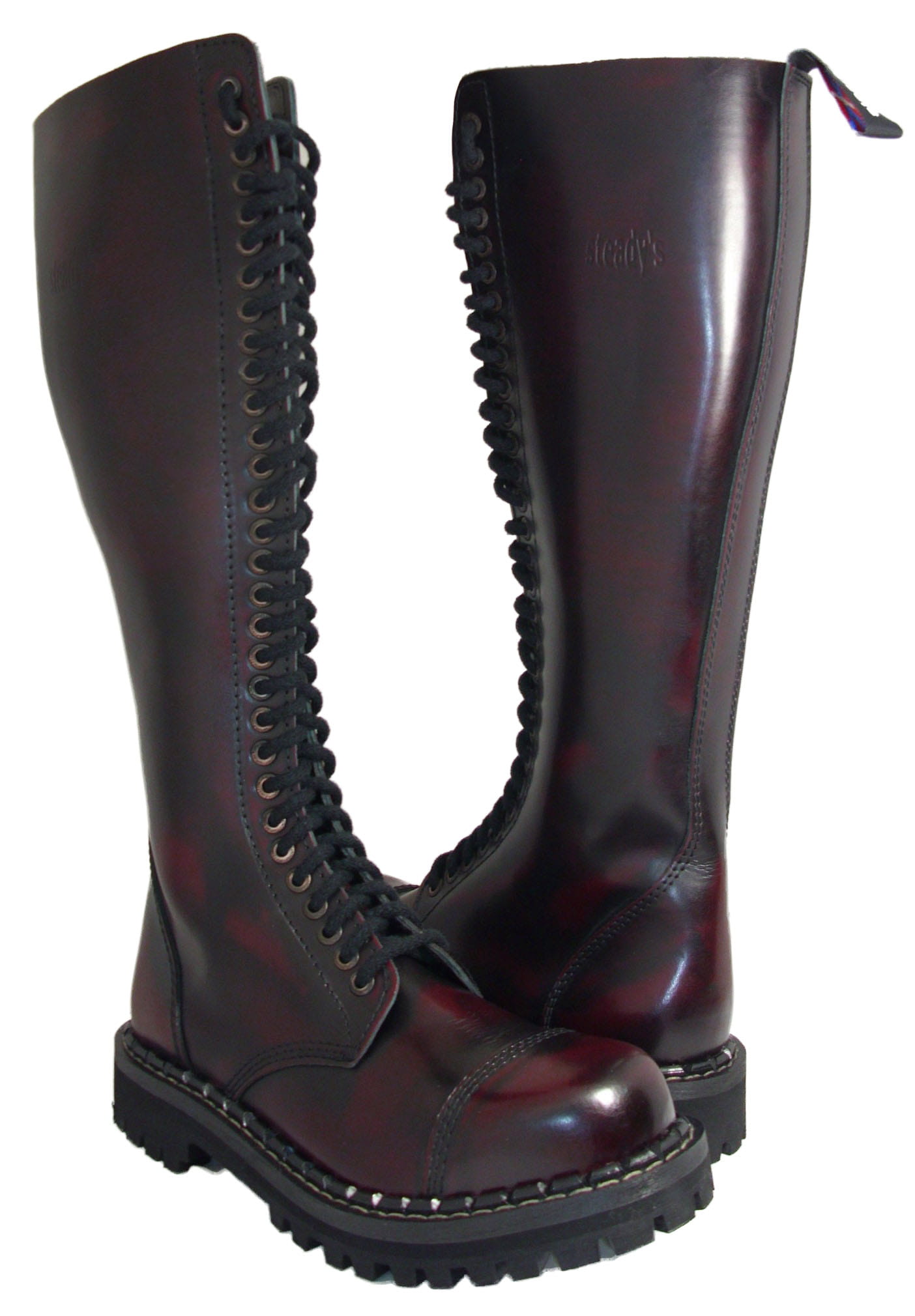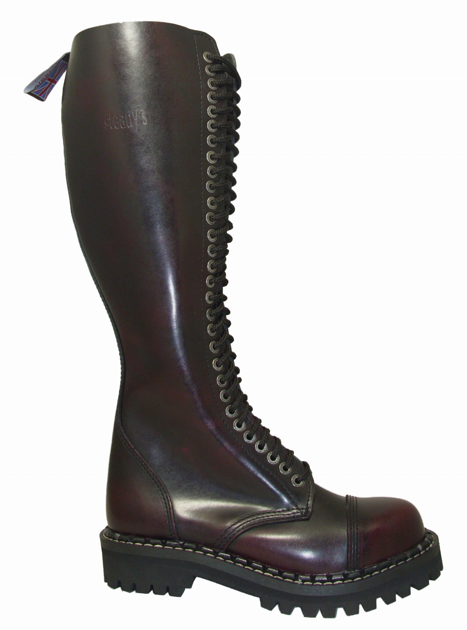 Kultowe, ponadczasowe Glany Steady's 30 oczkowe przecierane na bordowo